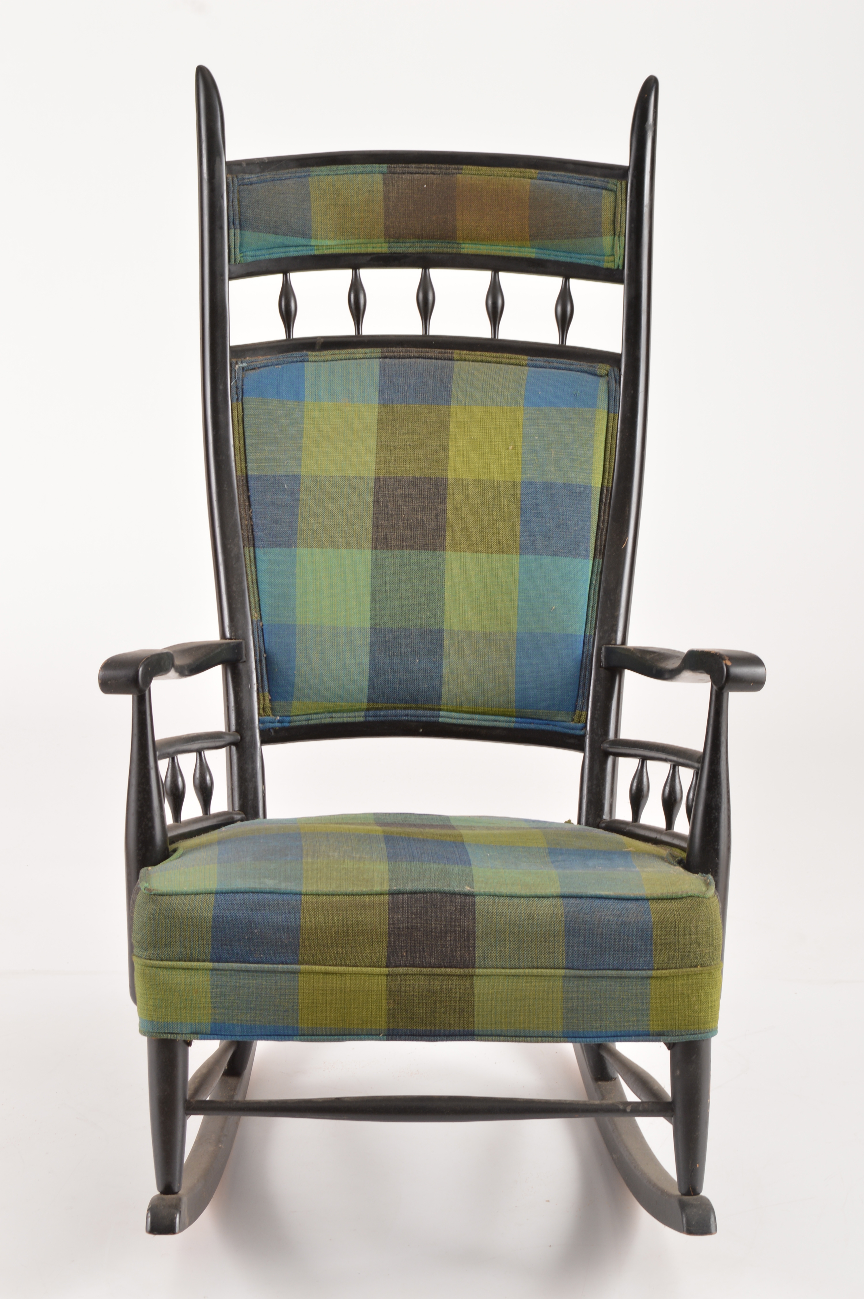 Picture Details FOR Black Lacquer and Plaid Upholstered Rocking Chair EBTH's Picture